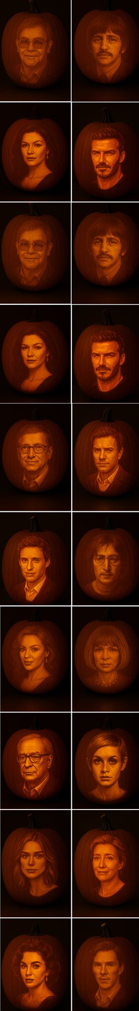 Below are 20 images of pumpkin carvings that I may or may not have done myself. The first thing you need to do is to work out which famous person is carved in to each pumpkin.